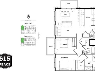 615 Peace is a collection of modern, luxury condos coming soon to Glenwood South in Downtown Raleigh. These contemporary homes contrast the historical, familiar feel of bold brick architecture with the sleek stylings of a new construction space. With one and two-bedroom plans, a balcony, access to three rooftop terraces, and private parking come standard, select units include mezzanine spaces with double-height ceilings + private rooftop spaces. Experience unparalleled Downtown lifestyle – see you at 615!