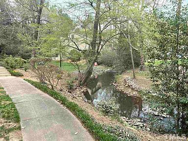 Cute first floor end unit condo. Tranquil setting in fabulous N Raleigh location, close to everything. Whole interior has been freshly painted, new LVP flooring just installed. Brand new granite counters and new sink highlight the spacious eat in kitchen with white cabinets. Plenty of living and dining space, as well as extra space that would be perfect for an office! Relax in the private porch. 2 full baths, & the bedrooms are quite large. Great green space next to unit. Community Pool.