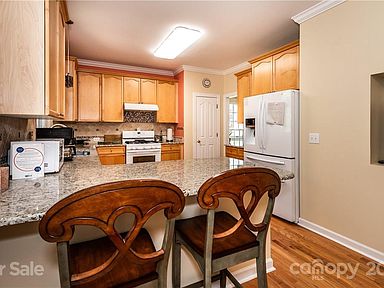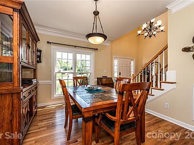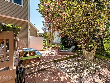 Conveniently located in the heart of Ballantyne this cul-de-sac home is a gem. Huge private yard with established landscaping, gorgeous trees, 2 patios in addition to the deck and sunroom. Hardwood floors lead you through this home. Spacious dining room with extensive crown moulding. Laundry room leads into the lg garage (washer and dryer can stay). Great room has media niche over the gas log fireplace. Lots of large windows for tons of natural light! Bar seating is available in the kitchen as well as a breakfast area, granite counters, tile backsplash, gas range, Bosch dishwasher, lg pantry and open to the sunroom. Up the hardwood stairs is a landing suitable for a desk. The owner suite features a private bath w/ jet tub, sep shower, w/c, granite counters, and also a private office, could be a nursery or craft room. Two additional bedrooms on the other side of the house share a hall bath. Convenient to shopping, restaurants, everything Ballantyne has to offer.