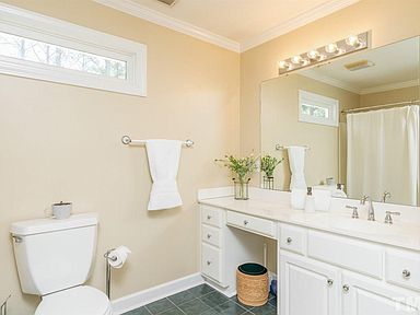 NO HOA! CUSTOM BRICK HOME ON ACRE OFFERS PLENTY OF PARKING FOR YOUR CAMPER/BOAT! FIRST FLR MSTR SUITE & FIRST FLR BEDRM/STUDY W/ FULL BATH! REAR STAIRCASE LEADS TO STUDIO/IN-LAW SUITE W/ KITCHEN ABOVE GARAGE–POTENTIAL FOR EXTRA INCOME! Formal dining, spacious family rm w/ vaulted clg & elegant stone frpl. Gourmet kitchen has island & lg bkfst area. Hardwds extend thruout main flr & staircase. First flr laundry rm. Deck, fenced bkyd & storage shed. New roof, tankless wtr heater.