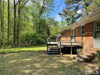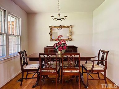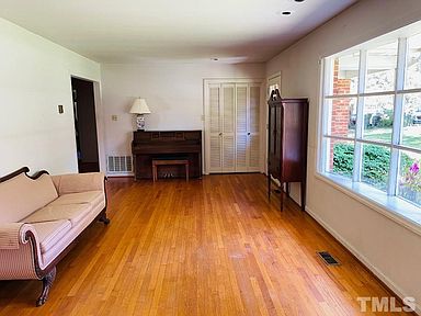 Fantastic location! Neighborhood access to Eno State Park & Eno River walking trails! All brick 3 BR, 2.5BA ranch, 1 car garage w/open family room & kitchen area. Large living room w/beautiful bay window which invites lovely natural light in. The separate dining room is perfect for dinner gatherings. Master features his & hers closets. Hardwoods throughout & appears to be under carpet in all 3 bedrooms also. Wooded lot on almost .5 acre. Just needs a little updating to make it your very own! 2020 HVAC.