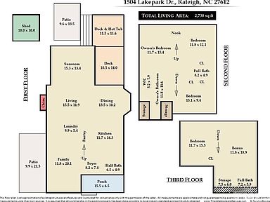 INCREDIBLE location – close to everything! Short drive to North Hills/Mid-town & Crabtree. Spacious, wonderful floorplan w/4 bedrooms 3 full and 1 half baths! Spacious family room PLUS a great room w/fireplace & incredible sunroom – remodeled open kitchen w/island – two decks & two patios – finished 3rd floor w/bedroom, spacious bonus room w/full bath and w/in storage!