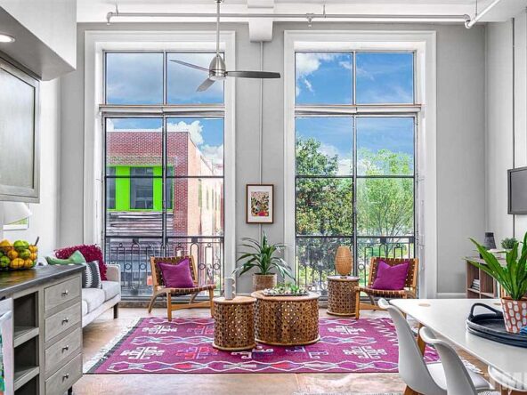 Live in the heart of downtown Durham at Baldwin Lofts. This beautiful loft features 12’ ceilings, floor-to-ceiling windows with custom window treatments, Juliette balcony with views of Black Wall Street Gardens and Main Street. Stainless steel appliances, maple kitchen cabinets, granite countertops, custom cabinetry plus closets designed by California Closet for maximum storage. You will enjoy the shared rooftop patio with views of American Tobacco, DPAC and Durham Bulls fireworks.