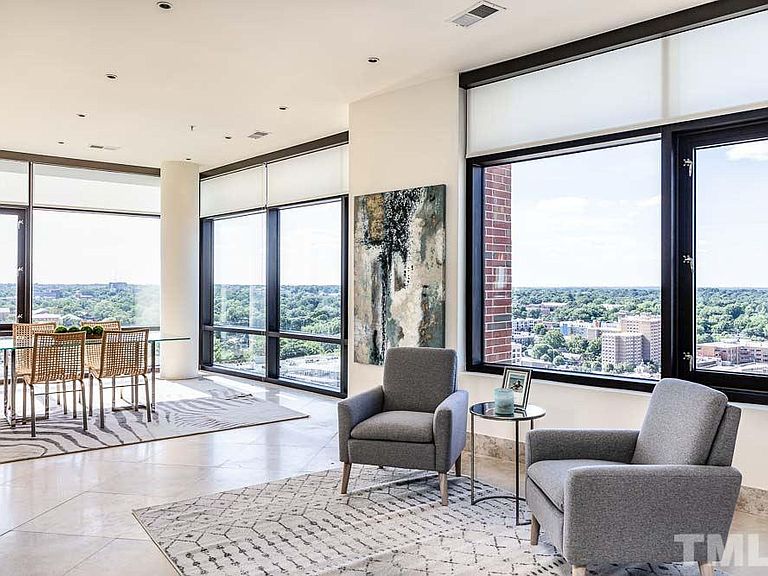 Look at the beautiful views of DT Raleigh from this luxury corner condo located on the 14th floor. Originally, planned as 2 separate condos this now combined unique condo offers more living space and wonderful features includes Travertine tile floors, Wolf gas stove, Subzero refrigerator, a separate bar area that includes a wine refrigerator, a master suite with a large walk in custom closet, a master spa bath and a separate laundry room for the washer and dryer and rare 3 deeded parking spaces included.