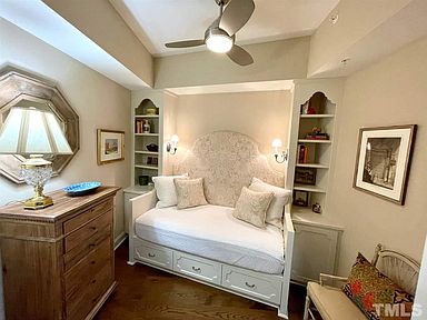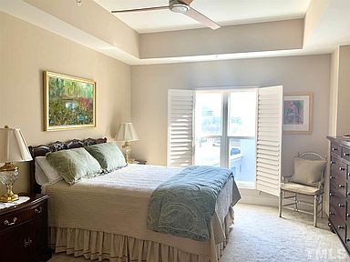 Penthouse End Unit 1br PLUS office & built-in daybed ~10t ceilings & view of Downtown Raleigh Skyline from balcony!!! Rare find in heart of restaurant rich Glenwood South in mint condition ~custom office & living area built-ins include daybed, plantation shutters! 2018 updates: walls+kitchen cabinet paint, new wood flooring & mbr carpet, bath tile floor, new tub and tile surround, rainfall shower head! 1 assigned parking deck space, secure building with M-F attendant, gym, pool & clubroom, outdoor grills
