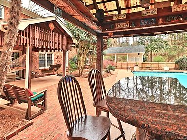 Price improvement !!! Welcome to your SouthPark Oasis . 4/3 bath full brick home with 2 vehicle carport , pool and awesome Tiki bar . Beautiful lot with lush landscaping . 2 of the bedroooms upstairs were combined to make a large master suite and gas fireplace. This home has incredible upgrades .Kitchen and all the bathrooms have been renovated with high end stone and marble . Formal living room and dining room and open kitchen with den upstairs huge bay window that over look the backyard beautiful fireplace. Wood medallion custom inlay floors, Downstairs there is a huge rec room with another fireplace & 2 additional bedrooms , office and work out area . This opens to the covered patio and the pool area . There is a huge deck off the kitchen with access to the back yard which is partially fenced yard Minutes to SouthPark , Quail Corners and the Lynx . Convenient to Uptown and SouthEnd . A true gem !!