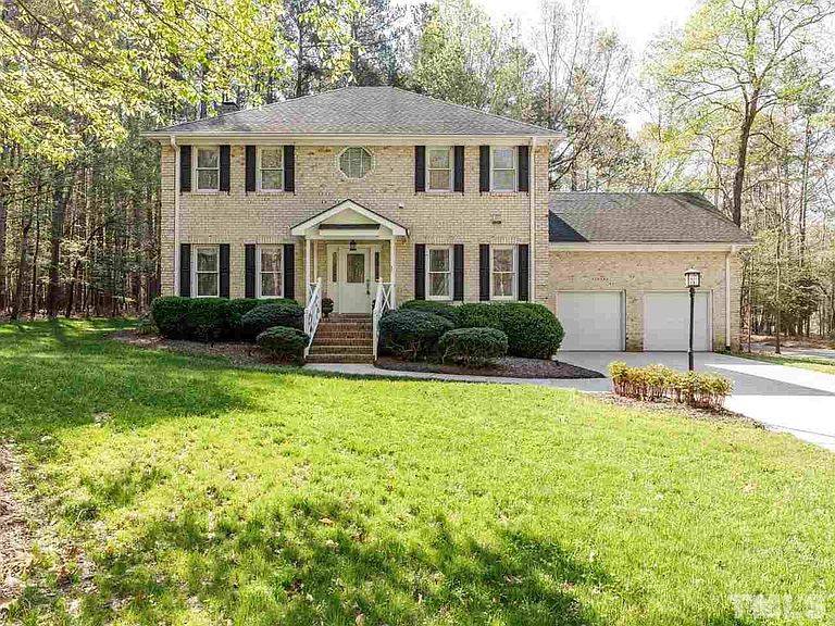 Rare find… 2.5 flat acres in North Raleigh! This three sided traditional brick home has been well maintained and upgraded. 3 new French doors, hardiplank siding, kitchen cabinets refaced, tile in upstairs baths and showers, granite in two baths, house crawlspace sealed with dehumidifier, new picture windows in nook area, new garage doors, 2 new Carrier HVAC units… the lot is unbelievable with separate gravel drive with power and water set up for an RV/Boat.