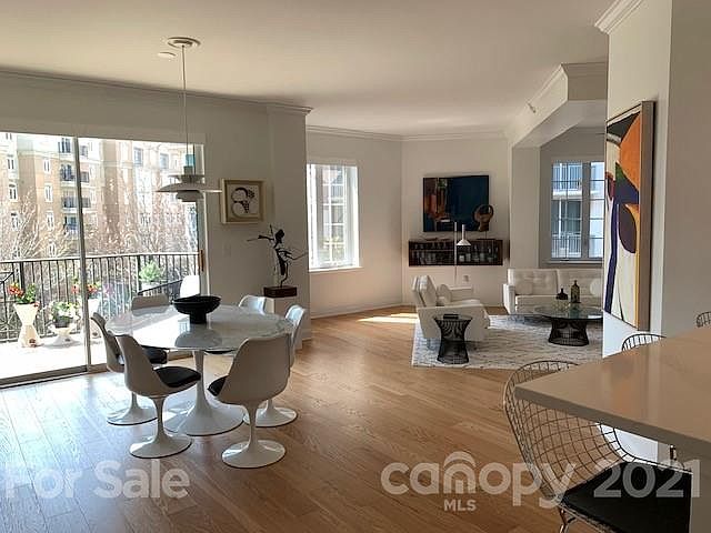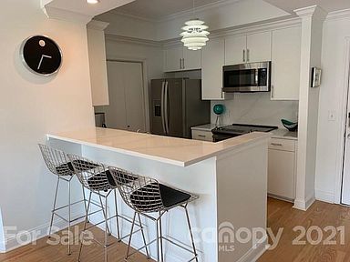 Step into the pages of Architectural Digest! This STUNNING condo has been totally transformed in the past year & is one of just 10 in the building boasting nearly 1400 sq.ft! Beautiful new kitchen cabinetry extends into the laundry room, providing maximum storage space & new Silestone counters & premium S/S appliances make the kitchen a chef’s dream! Flush panel doors have been installed throughout & the master bedroom closet has been totally customized. New wide plank oak hardwoods,custom window treatments, designer lighting & fresh paint complete the elegant, contemporary ambiance. The 2nd bedroom is being used as a den, with a cleverly integrated office nook! The balcony offers expansive city views. Amenities include 24/7 Concierge, Coffee Bar, Media/Billiard Lounge, Business Center, Rooftop & Indoor Fireside Lounges & a Harris Teeter market IN the building! You simply won’t find a condo of this caliber, with the hotel-style amenities of Fifth & Poplar, in any other uptown building!