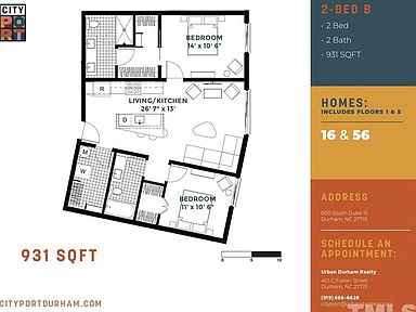 Target completion this summer, City Port provides the opportunity to create the perfect home base to experience everything downtown Durham offers! Features include 10-ft ceilings, floor-to-ceiling windows, high performance construction, and sound mitigation includes upgraded STC windows. Shared porch and lobby, and common rooftop terrace with grill. One parking space included, or choose an optional $30,000 credit for no parking space. Walkable to downtown, Brightleaf, Duke campuses and Ninth St.