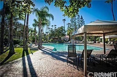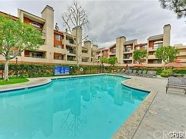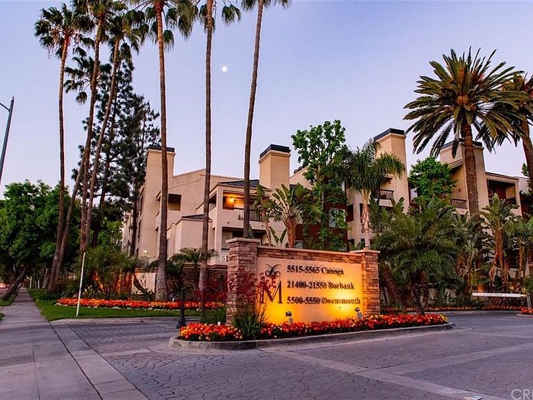 This highly sought after 2br + 2ba condo (floor plan 2E) in the “Resort Style” Met Community at Warner Center is perfectly situated facing a courtyard on a quiet location away from the center of the complex. One of the 4 community pools and spa is just a few steps from the building entrance.The open concept floor plan offers function, comfort and natural light. The two bedrooms are large, private and offer oversized mirrored closet doors. The spacious kitchen has stainless steel appliances and granite counter tops. The en-suite master bedroom has a double sink vanity and his and hers mirrored closet doors. Other features are plush carpeting; an in unit stacked washer/dryer; a spacious covered balcony with a storage room; conveniently located 2-car covered tandem parking under the building and plenty of guest parking .The Met is a RESORT style community on 29 acres with 24 hr Security; guard gated entrance, state of the art fitness center with sauna, indoor racquetball and basketball courts, community club house, six fully lit tennis courts, four pools, spas, children’s play area and is pet friendly, too. The Met is located a couple of minutes from Ventura Blvd, 101 freeway, Westfield Mall, The Village shops and restaurants, Costco and AMC theater.