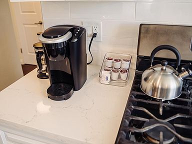 – FULL KITCHEN STOCKED WITH ALL ESSENTIALS, FROM COFFEE TO COOKWARE