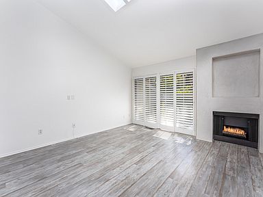 Oversized sunlit rooms are accented by custom features. Quality craftsmanship and materials throughout. Formal dining room overlooks fireside living room which opens to private patio. The open concept floor plan is perfect for entertaining. The kitchen is fit for a gourmet chef featuring stainless steel LG and Samsung appliances, granite countertops, an abundance of cabinets, and counter space with a breakfast area and greenhouse window. The entire upstairs is the master suite which offers two large walk-in closets plus a bonus closet, newly remodeled master bath, vanity area, new tech UV Anti-bacterial bathroom ceiling light and fan in both bathroom, and Minka Air ceiling fan with remote. Tranquil view of thick Eucalyptus trees creates a serene feeling. The second bedroom is on the main floor can be completely closed off from the house for privacy with a private bath. Upgrades include designer lightning, grey driftwood engineered wood flooring, security system ready, plantation shutters, skylight, professional paint, utility sink in the garage to wash your wetsuits off after the beach, and your own personal 240V Electric Vehicle charging station located in your private garage. The large over-sized private two-car garage has plenty of storage for your surfboards and kayaks.